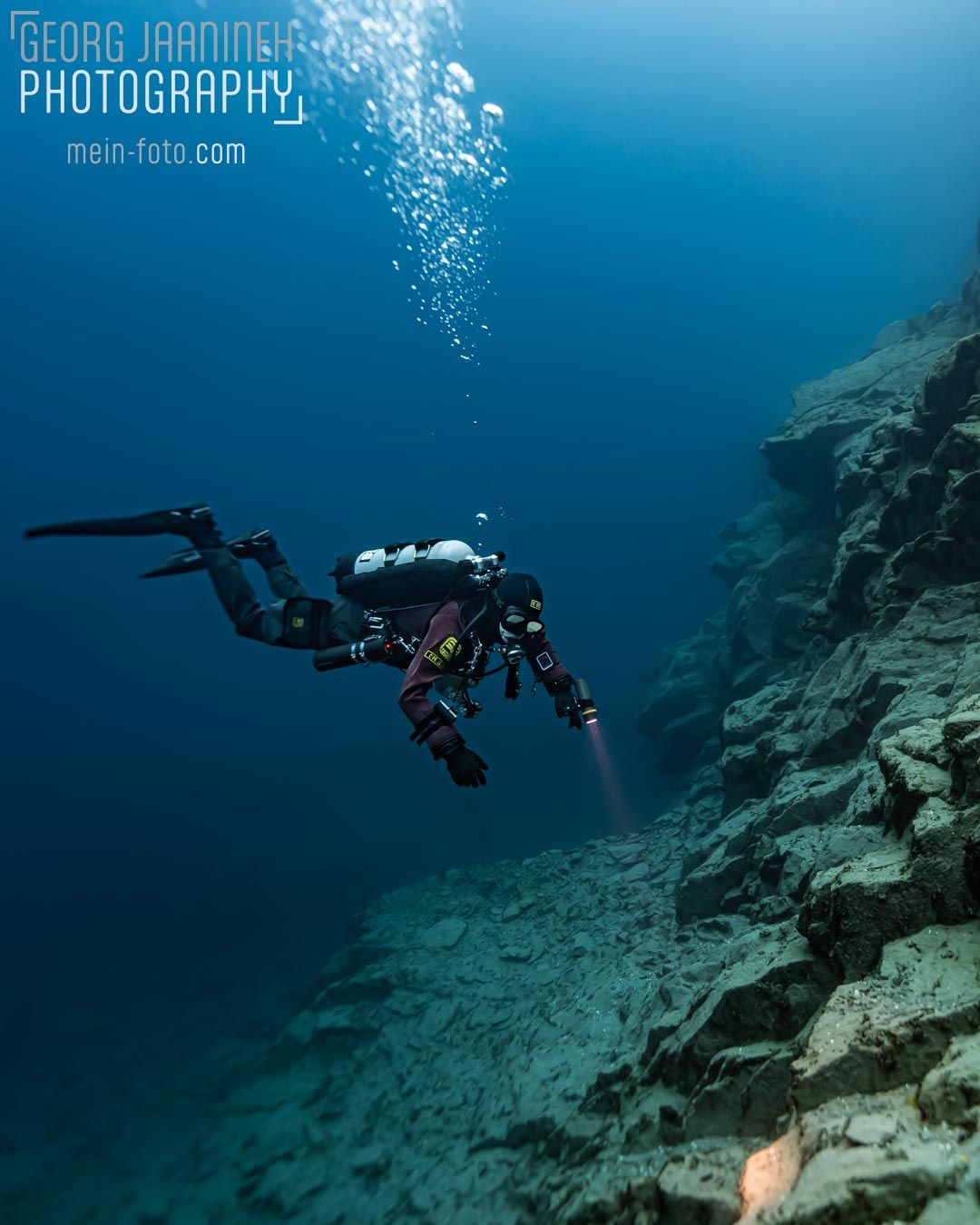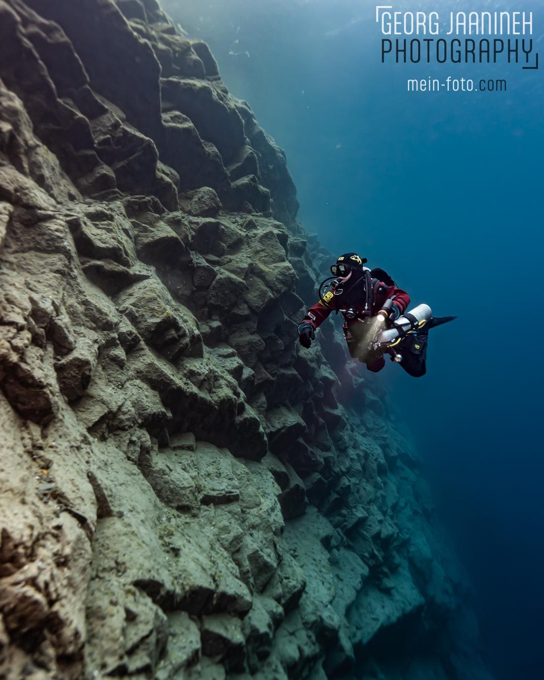 Die Steilhänge beeindruckenden mächtig. Ein Erlebnis, das unter die Haut geht. Nicht unbegründet erwartet der Betreiber mindestens 100 Tauchgänge Erfahrung im Kaltwasser.